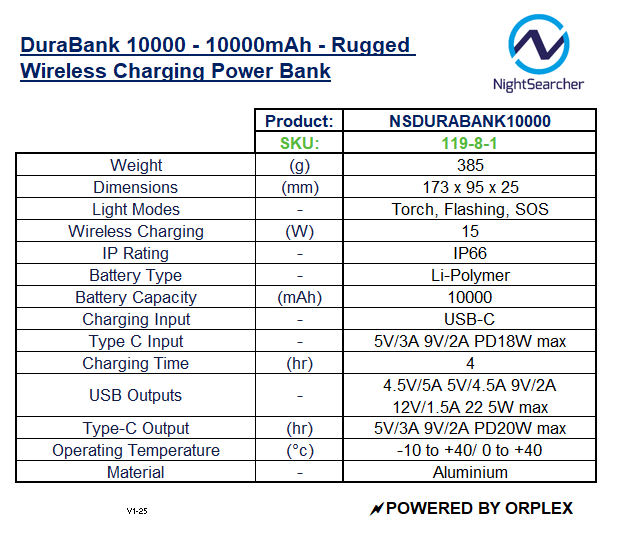 The DuraBank 10000 is a high-performance portable power bank designed to meet the needs of both everyday users and those in demanding environments. Featuring a robust 10,000mAh Li-Polymer battery, this power bank delivers fast charging, reaching 80% in just 4 hours, making it an ideal companion for quick energy boosts during outdoor adventures, industrial tasks, or emergency situations.