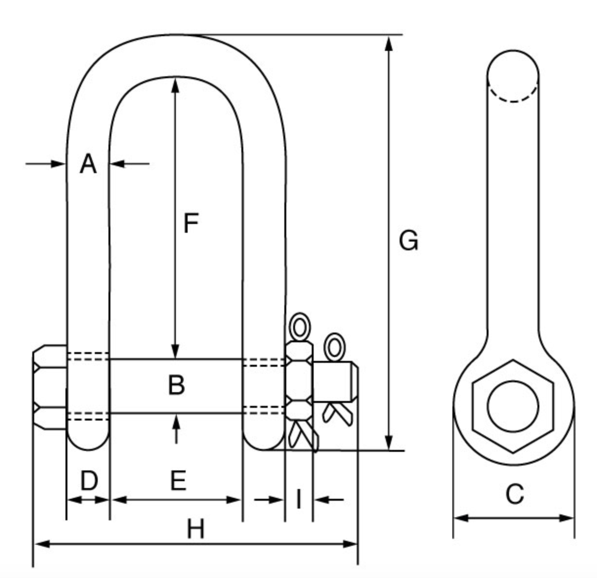 Green Pin BigMouth Grade 8 Dee Shackle with Safety Nut and Bolt Pin
