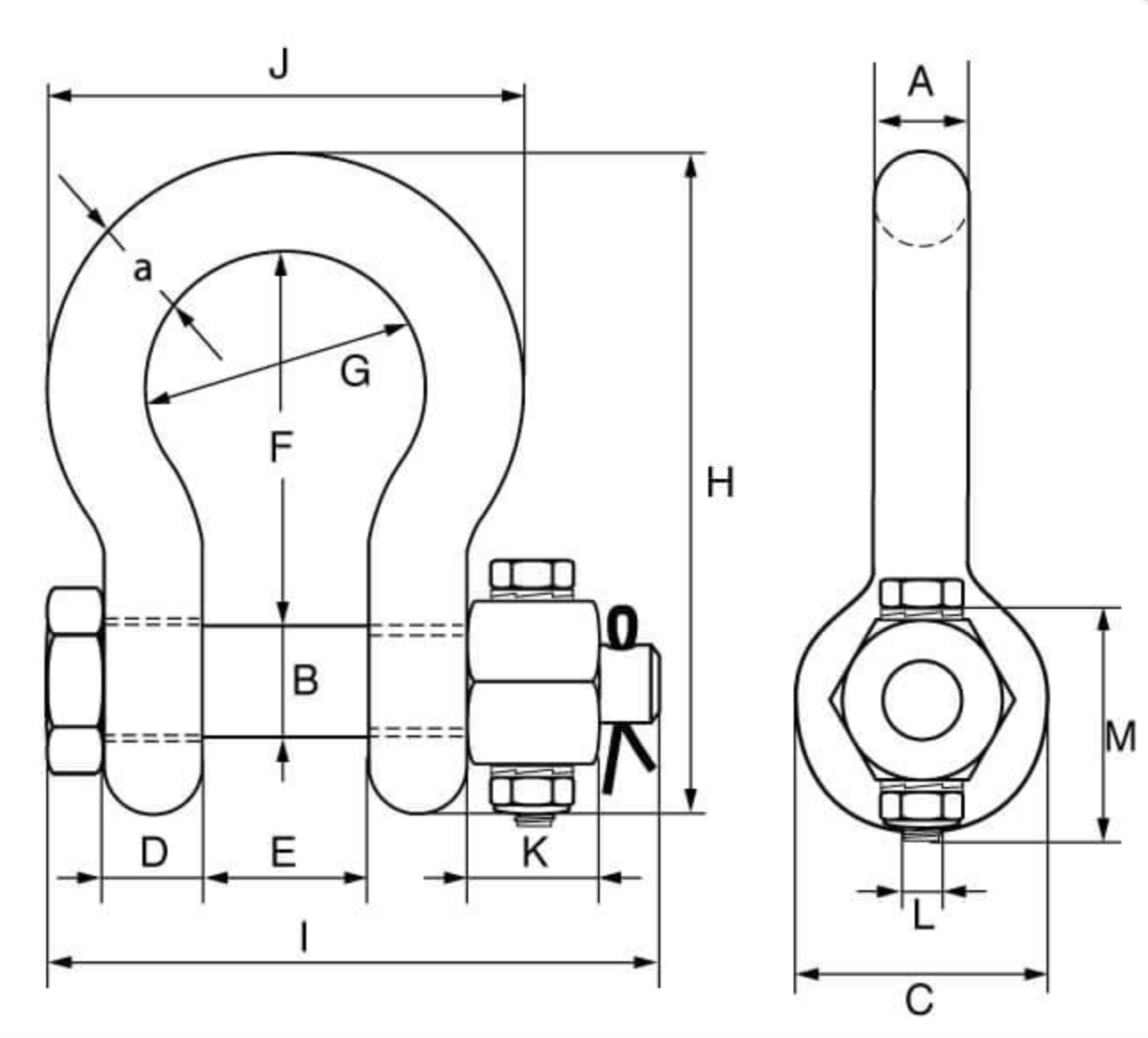 - Extra AISI 316 securing bolt drilled through the nut and shackle pin.