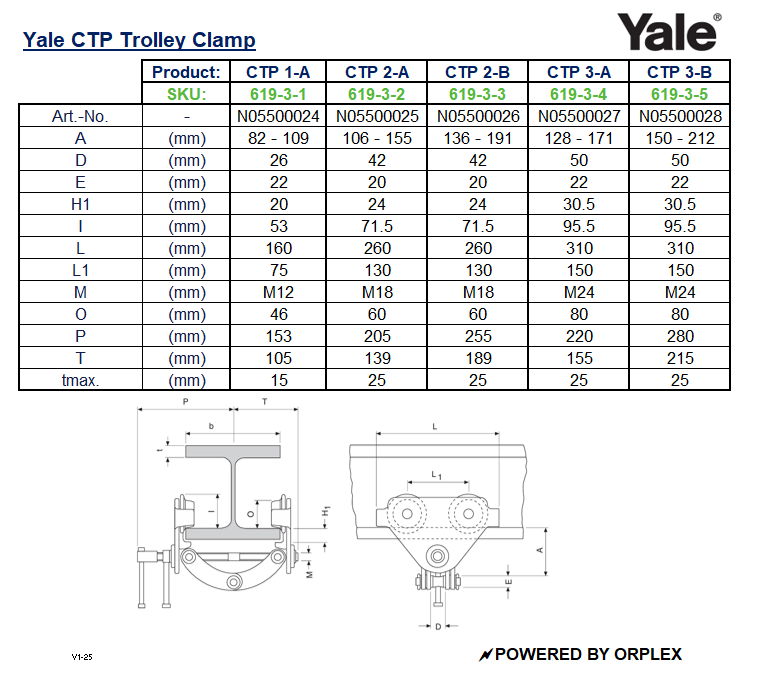 Yale CTP 2-A Trolley Beam Clamp 2000 kg – Beam 75-200mm
